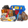 You get a jacket and fishing vest with hook & loop closures, a necktie, a golf-style shirt, hats, gloves, tools for pretend repairs, and more. You get 16 pieces in a handy plastic storage trunk.