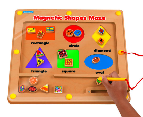 Kids explore geometric shapes as they guide everyday objects through our fun magnetic maze!