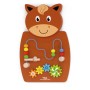 A wall toy of turning gears and moving wire beads.